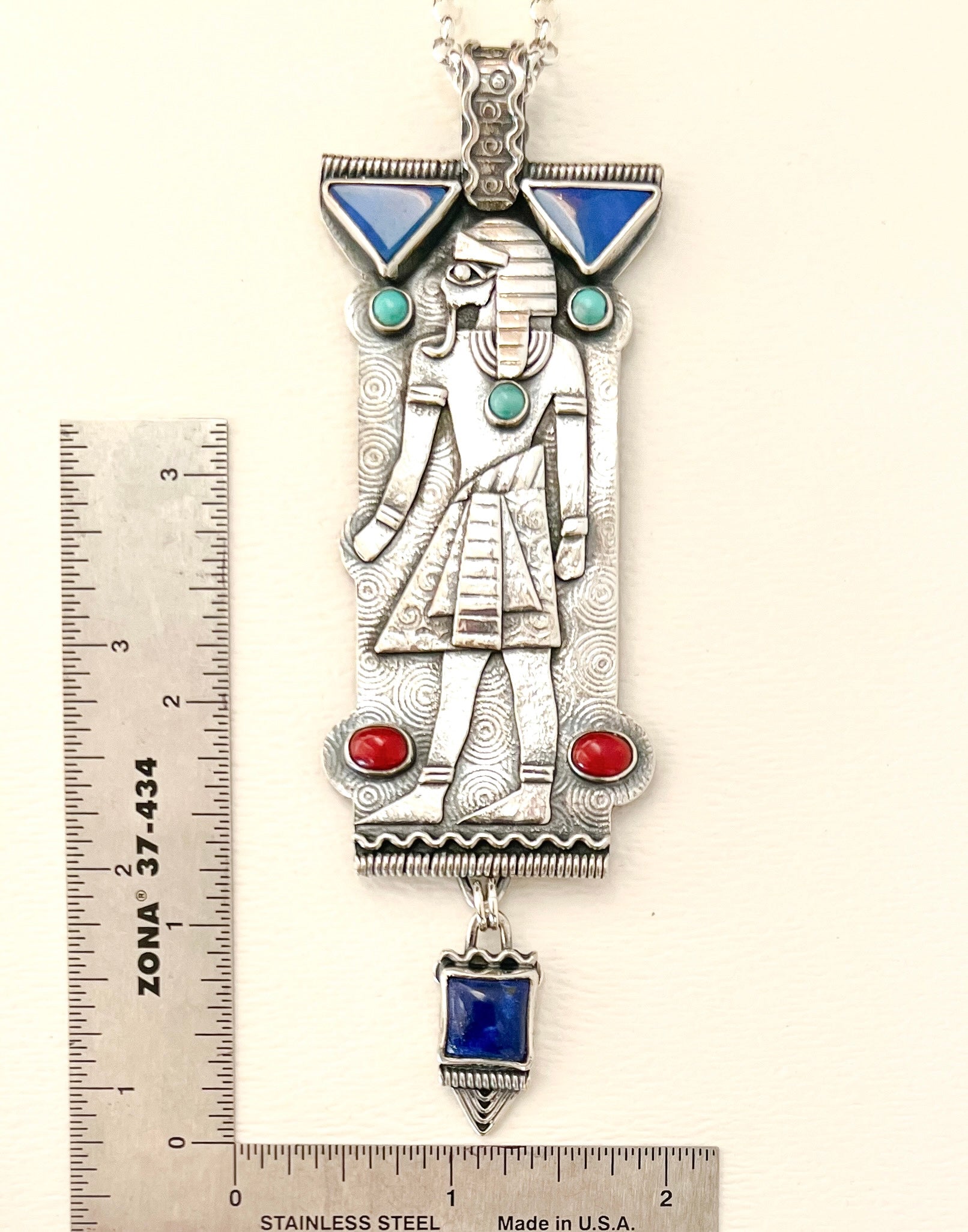 Each element is made by hand to create the essence of the period. If you appreciate Egyptian history, design and their antiquities this necklace is for you. Egypt and their artifacts have always been a fascination of mine, maybe someday I’ll get to go. Thanks for taking a look.